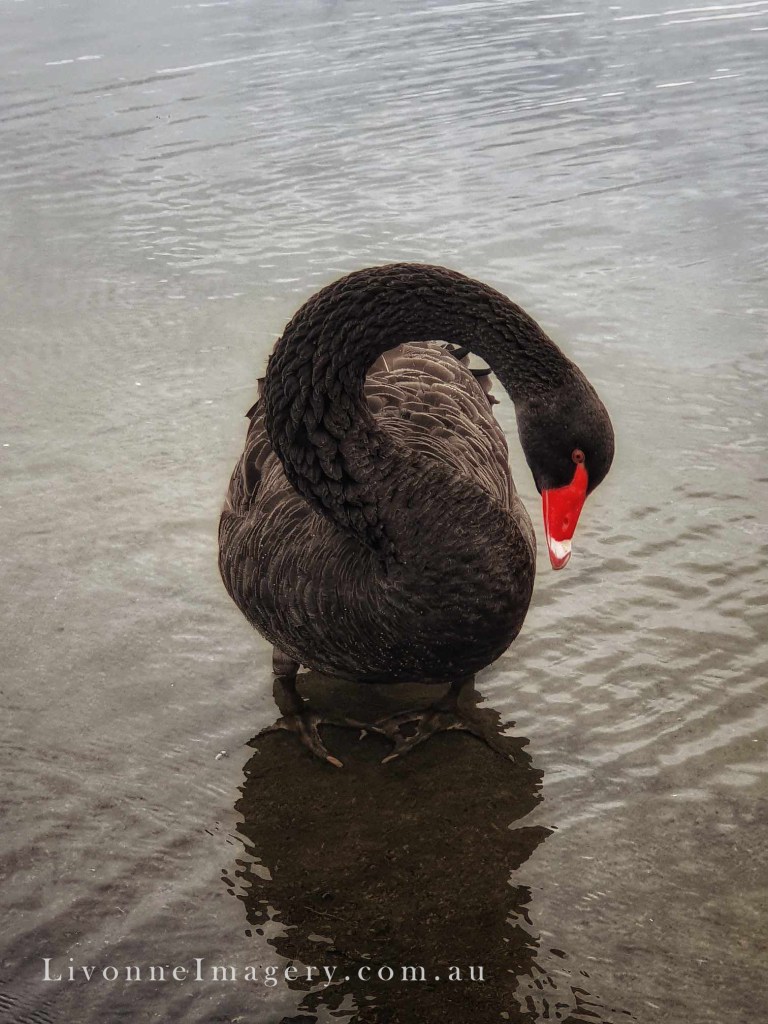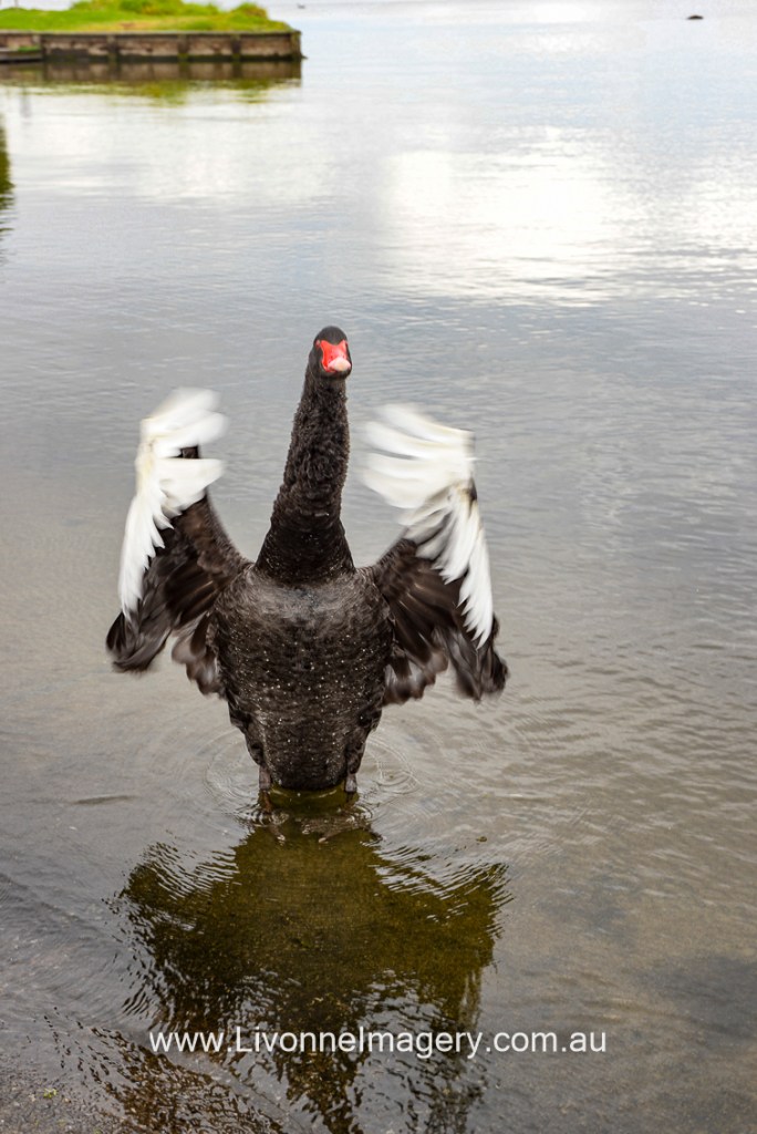 We kept going onto Rotorua where we stopped at the waterfront. Such a soft and smooth water view with more swans in the distance. Now I think two of the black swans must have been models in a previous life, because as soon as they saw someone with a camera, they started swimming from a fair way out to the shoreline. As I was taking photos, one got closer to me and suddenly stood up and flung his wings straight out to the side, posing for me. He really knew how to work a camera. Unfortunately, I got such a shock that I missed the money shot and by the time I took the photo, his wings were on their way down by his side again. But they definitely posed for me and you felt strongly that they knew what they were doing.