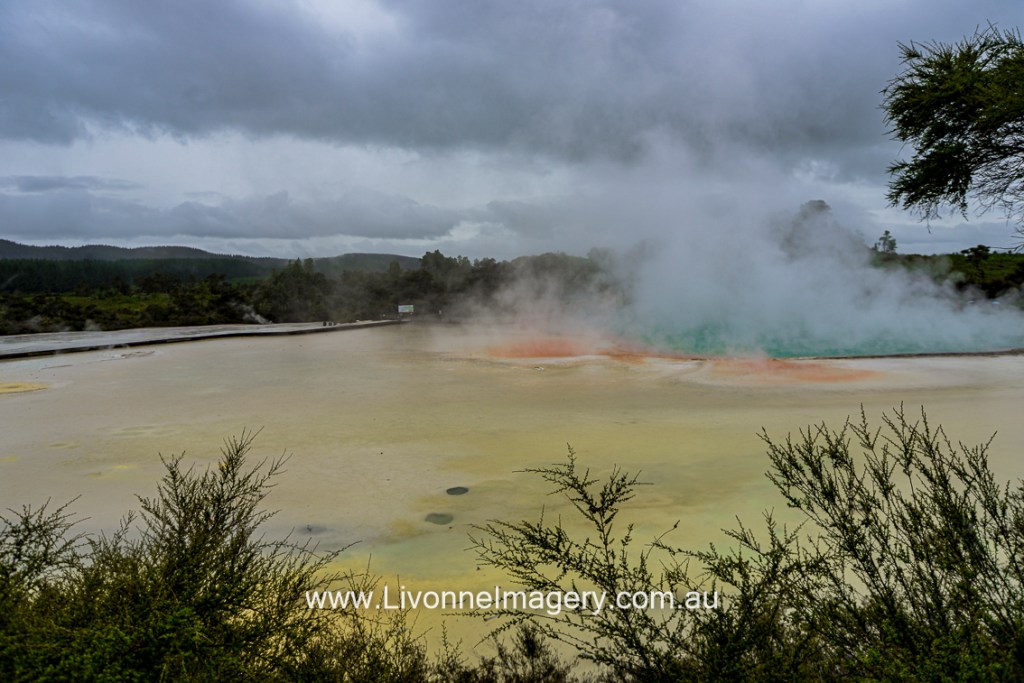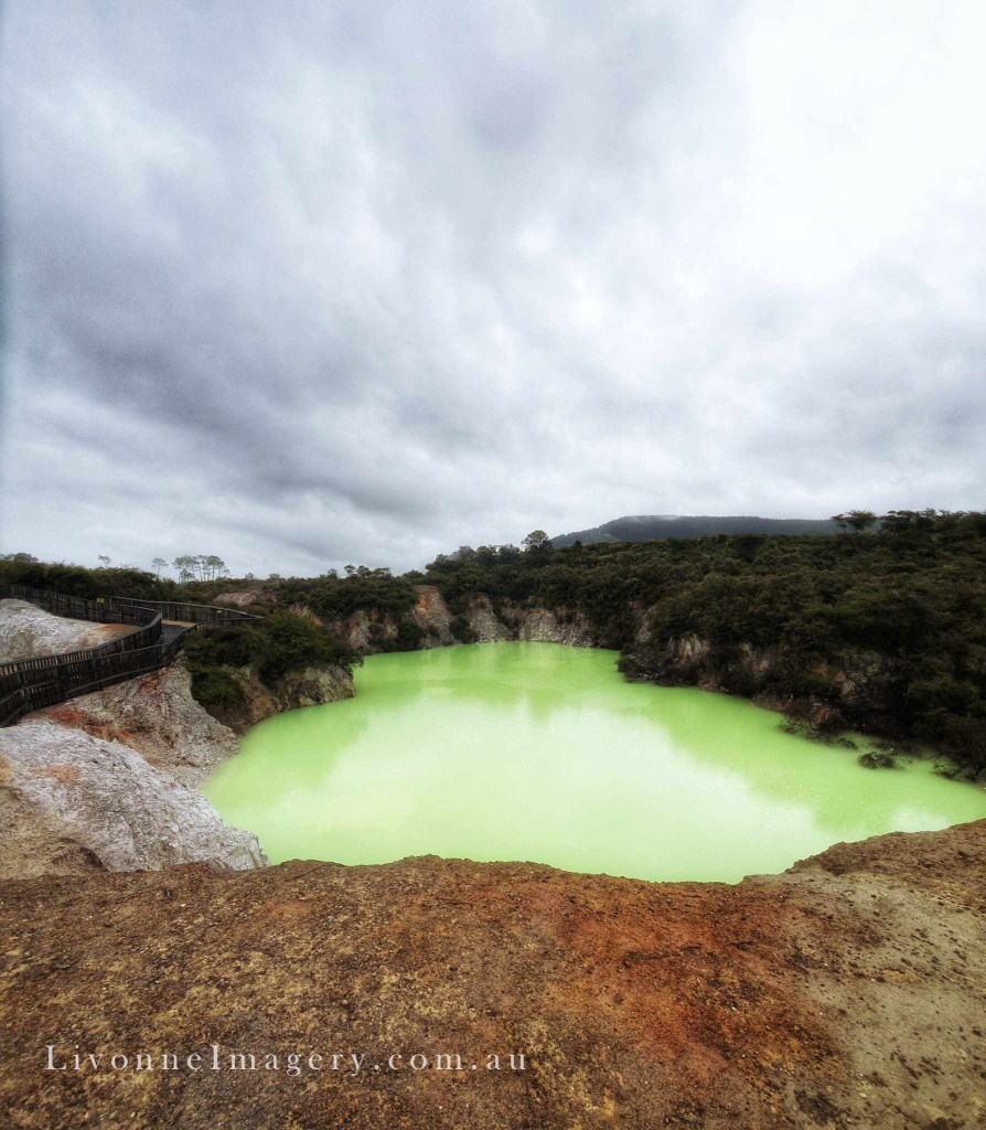 From there we headed on to Wai’o’tapu Thermal Wonderland which was incredible. It is an active geothermal area in New Zealand’s Taupo Volcanic Zone. Now, I am not a fit person, but it was quite accessible considering the rugged landscape. The tracks were well kept and it was all well set out and signposted so you could take your pick of walks. You can choose one or all of the three walk and they take between 45 and 90 minutes. There are a number of stairs in some places along the tracks and while we did quite a lot, we did miss the very last bit, though Mike continued on while we girls wandered back at a leisurely pace.