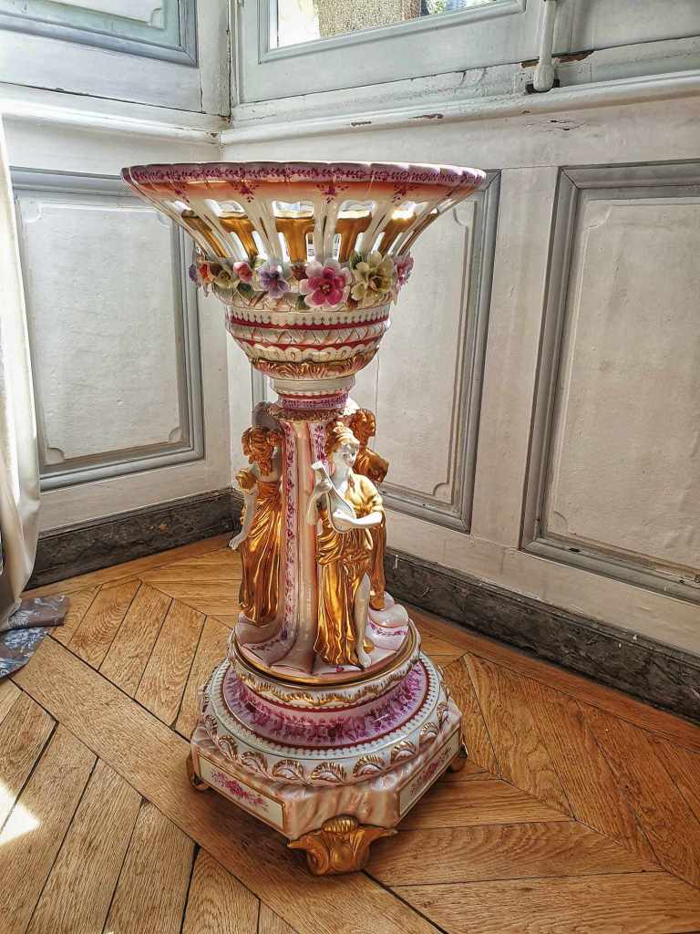 A bocante is like a thrift shop or even a market or garage sale I think. So I was really looking forward to it. In the van, we headed through the country lanes, into Fresnay-sur-Sarthe which is just gorgeous and has a few brocantes. We got dropped off in the main area of the stores and started to find them, but they were all closed bar one and that didn’t have any clothing in it. We wandered into a small Atelier (studio) and although it was private and closed, the wonderful artist, Nathalie, made us feel welcome trespassing on her time and space. She illustrated children’s books as well as doing paintings with other bits added. Her work was so beautiful. She also does felting which was so whimsical. I loved her stuff. It was fairytale and magical.