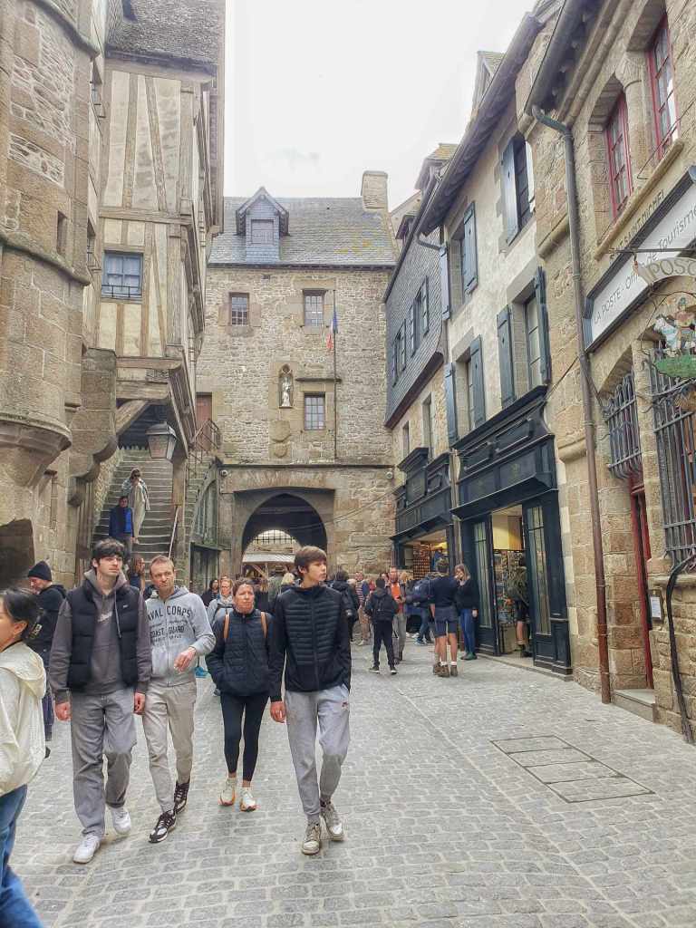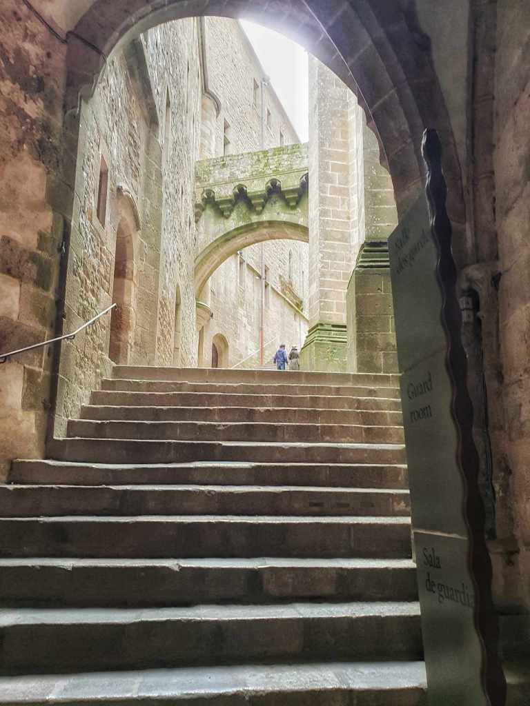 I think it was about 2.5 hours from here to Mont Saint Michel and we arrived at the parking lot with some time to spare. The problem of course is that from the parking lot, you have to walk up to get the shuttle bus that will take you over the bridge to the incredible landmark. We got on the bus which was packed and got over there just before the time we had booked a guided tour for. To be honest, I took one look at all the stairs and was worried if I could do that many stairs.