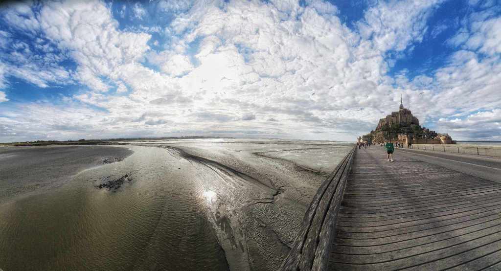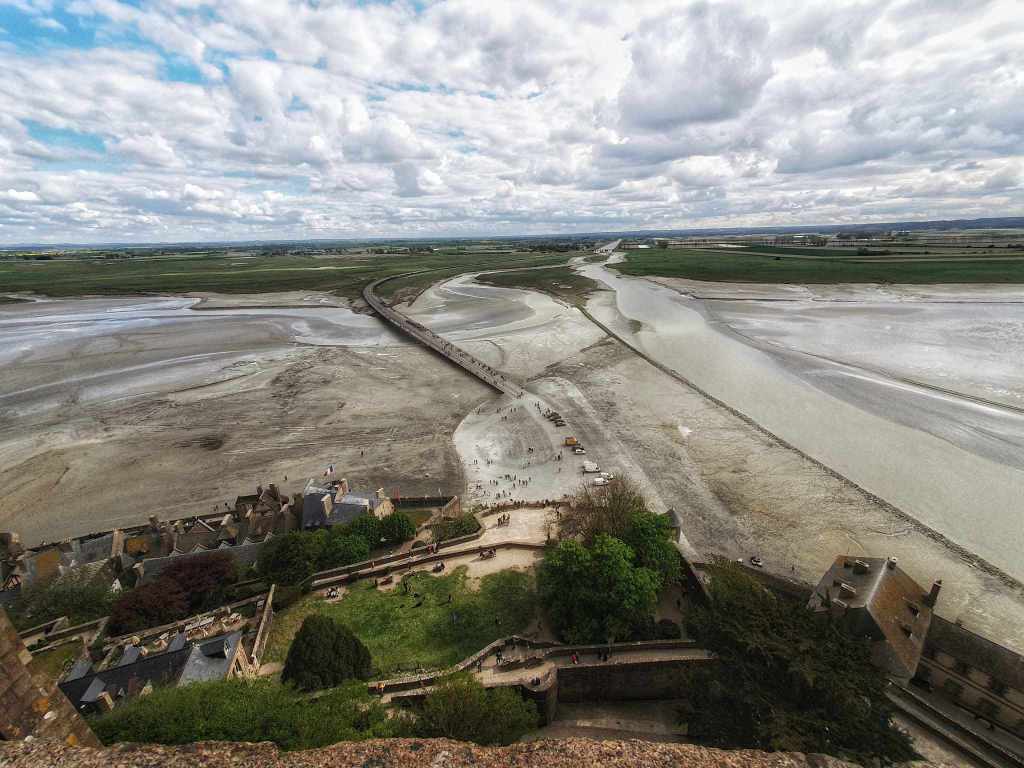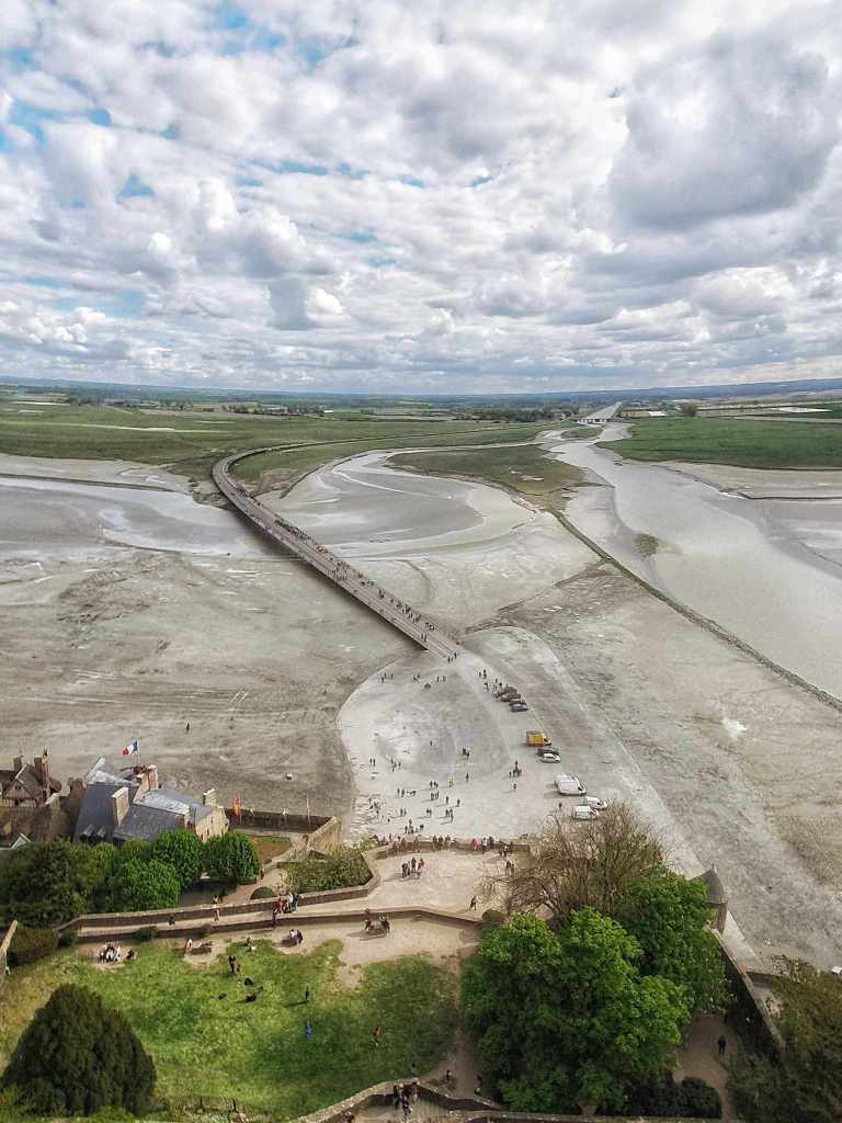 So we kept going. Every time we thought we’d finally made it there was another bloody set of steps. This is not for the faint hearted let me tell you. Finally after what seemed like 47 million stairs, we finally made it up to the area surrounding the abbey near the top. Oh what a glorious site. Mont Saint Michel is an old fortress kind of abbey build on an island. And the surrounding land was all water but the tide is out a lot, so you can walk across the empty sea beds to get there. I’m so glad we decided on the shuttle bus instead.