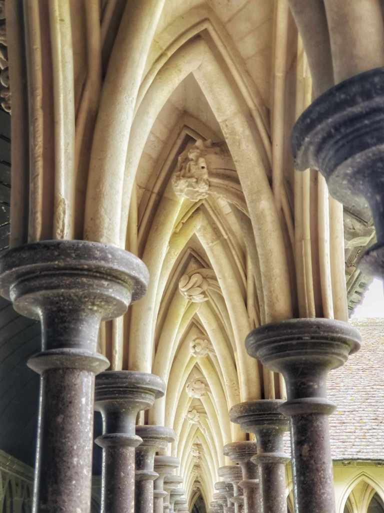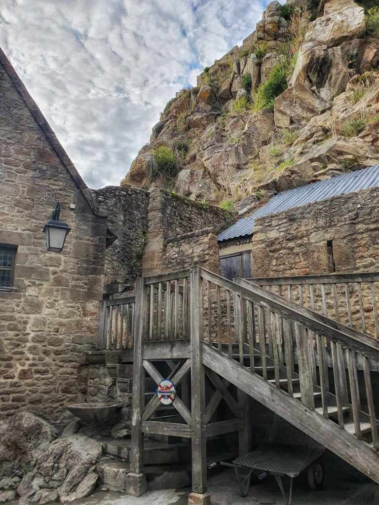 The chateau if full of stairs, Mont Saint Michel is full of stairs. Almost every place with the best views is full of stairs. After my fall the other day, my knee hates it when I decide to do stairs and it hurts to pay me back for my decisions. Anyway, we fought through the crowds and I do mean that. It is a narrow little path leading up to the abbey and it is packed with people. It was quite claustrophobic. And it is damn steep even before you come to the stairs.
