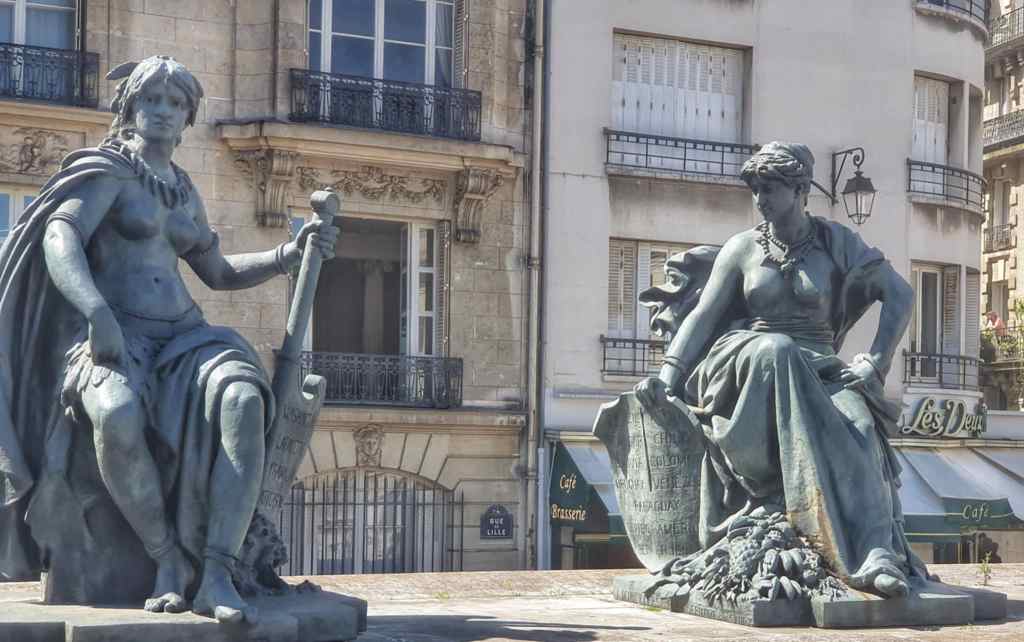 We got to the Musee d’Orsay and as we hadn’t booked tickets, we had to line up in the old cattle race again. The line went quick enough but we were again out in the sun which was already stinking hot. The UV factor is low but the heat is horrendous. Anyway, while we waited I mused about what the statues of the women were out the front. I assumed they were the ones that rose from the Seine during the Olympics, but it turns out there were actually made for the Expo in 1878 and moved to the museum courtyard in 1985. The six statues represent the six continents of the world.