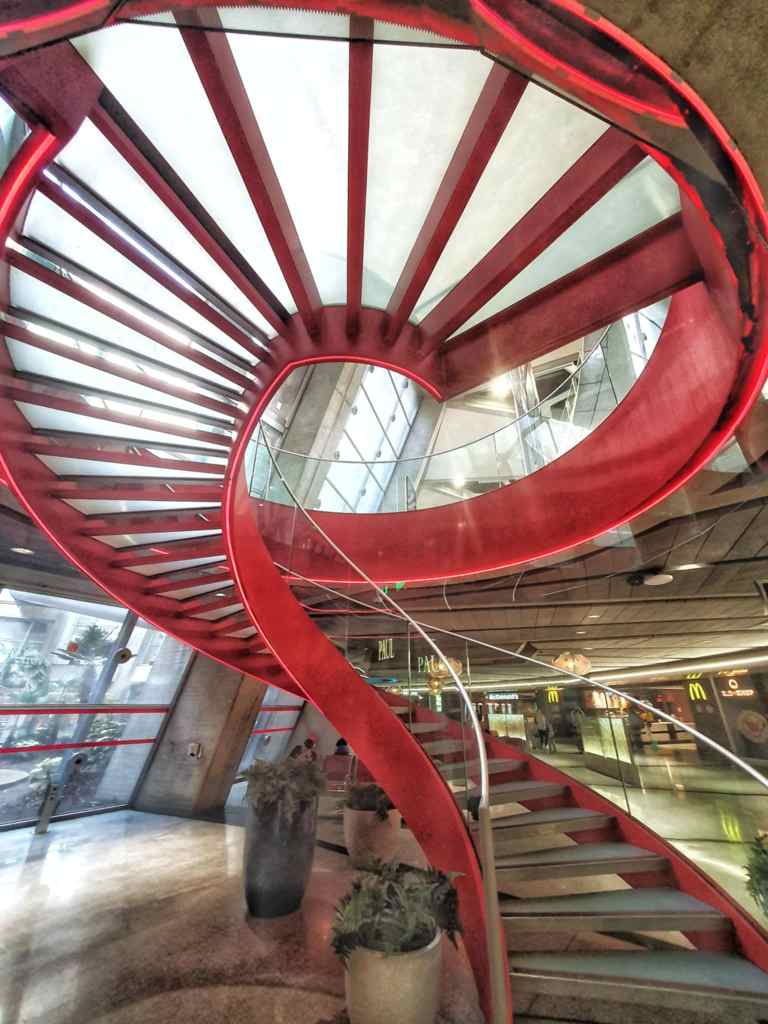 I raced up the escalator and by this time, presented my boarding pass and we were ready to board. Well that’s what it seemed like, but no. We were just taking a bus to another terminal to board. So, we climbed onto a packed bus with other passengers on the same flight, across the tarmac where we alighted and then had to climb up a staircase and through a tunnel to then board the plane. So far, our not really walking for a full 24 hours wasn’t doing too well.