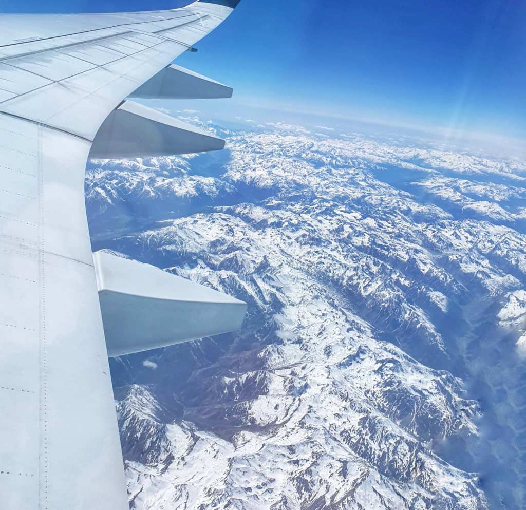 All good, we got on the plane, so our 24 hours starts from here. We settled in and before we knew it, we were up, up and away, saying adieu to Paris as we went. The country side as we were leaving was just beautiful and we got some great shots of it from the window. It didn’t seem too long after we’d taken off that we were served lunch but for the life of me, I can’t remember what it was. I think it was a chicken dish but I could be totally wrong. I also wrote the Disneyland blog but of course had no internet to post it, so I just kept it for when we landed. We flew over the alps on our way and oh what a glorious sight that was. We hit quite a bit of turbulence along the way which was a bit hair raising but all was well.